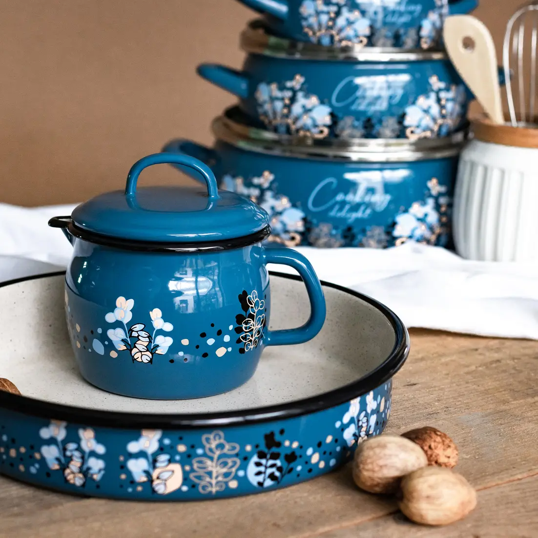 • Naczynie wykonane z emalii, co zapewnia wyjątkową odporność na uszkodzenia i temperaturę