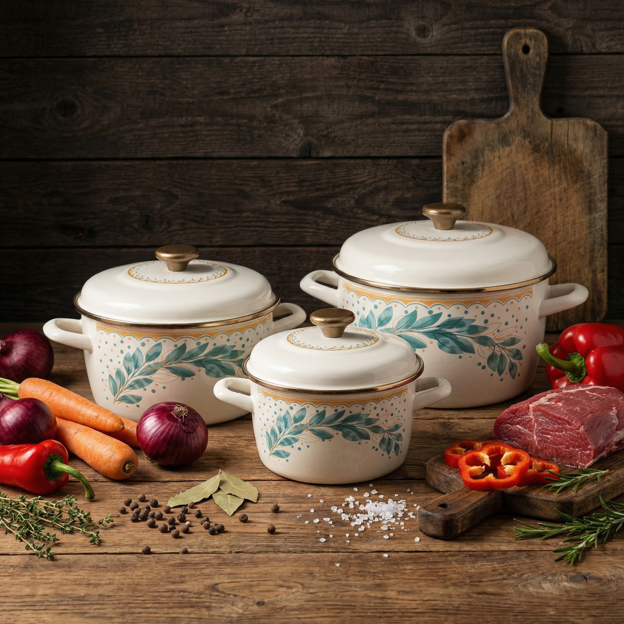 METALAC | Green Line Komplet 3 garnków z pokrywkami / emaliowane