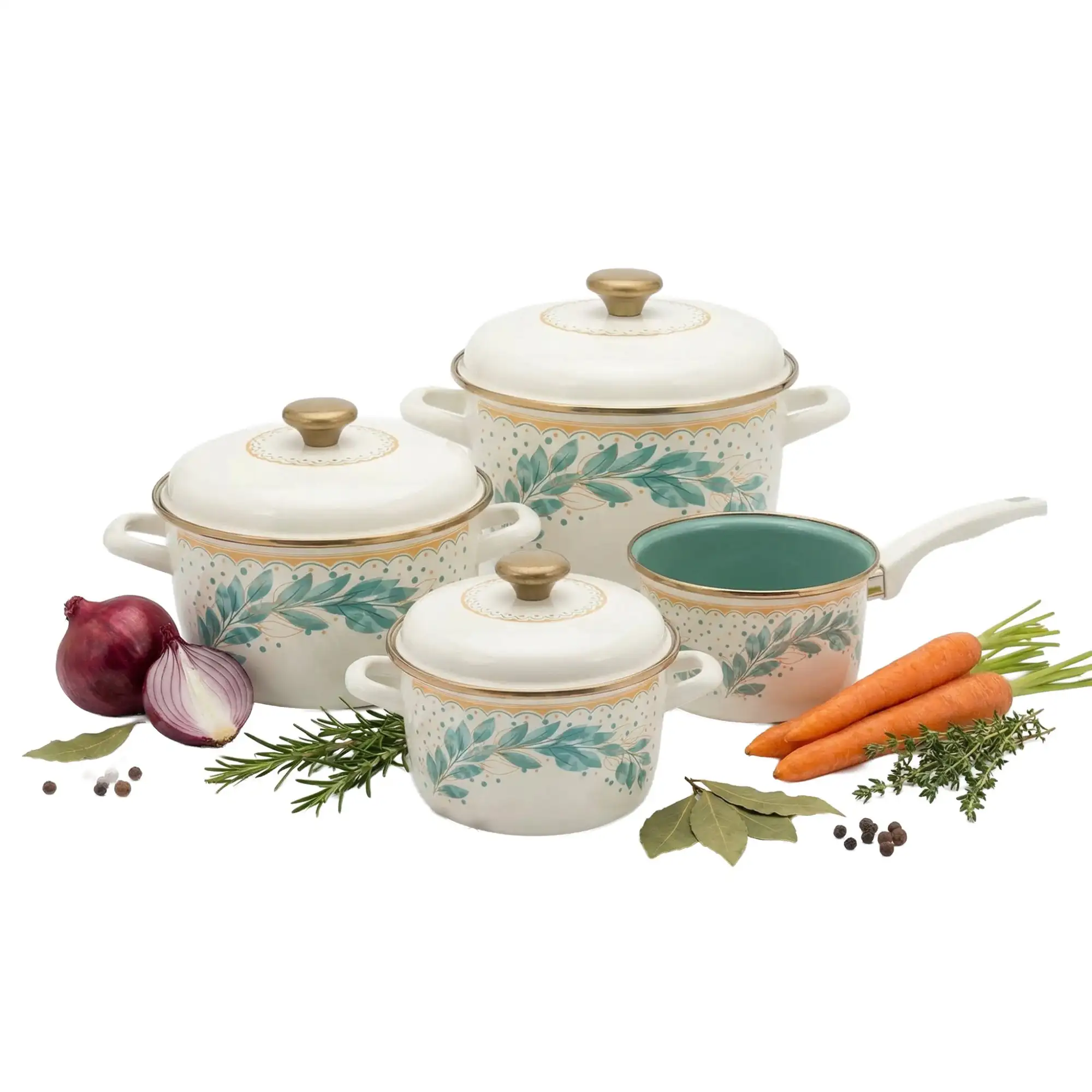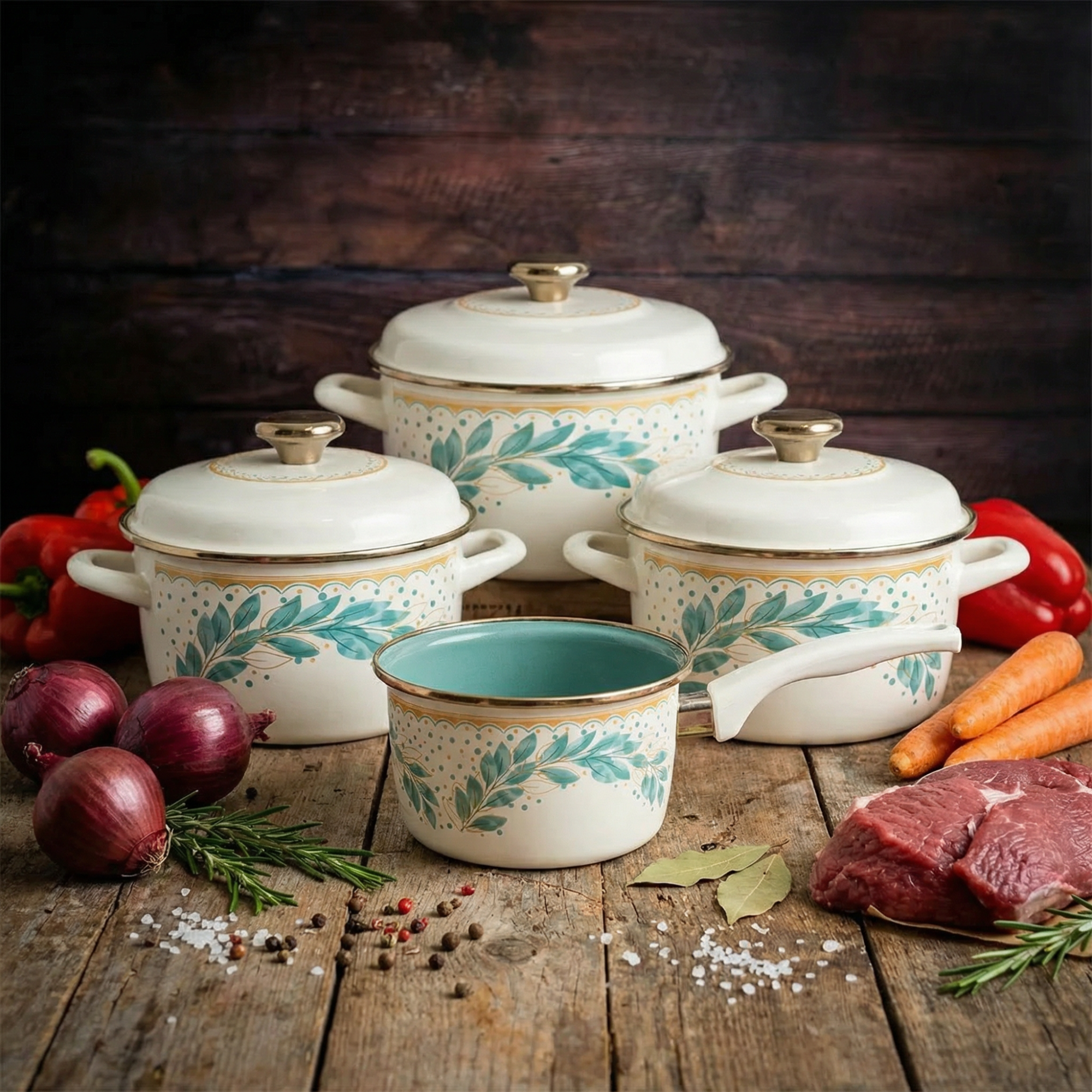 METALAC | Green Line Komplet 4 garnków z pokrywkami / emaliowane