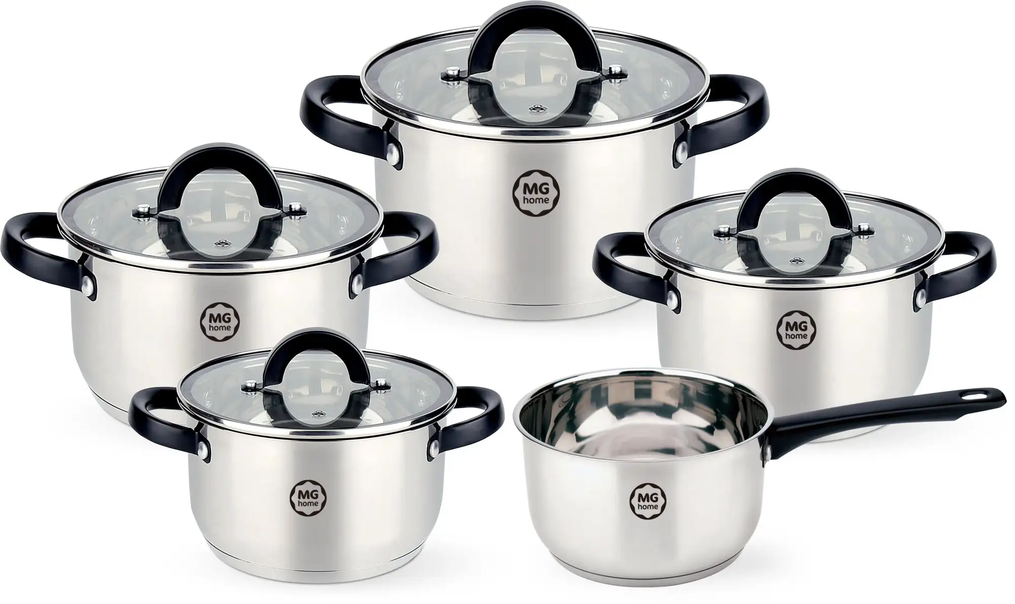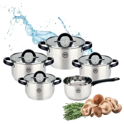• W zestawie znajduje się rondel oraz osiem garnków o różnych pojemnościach