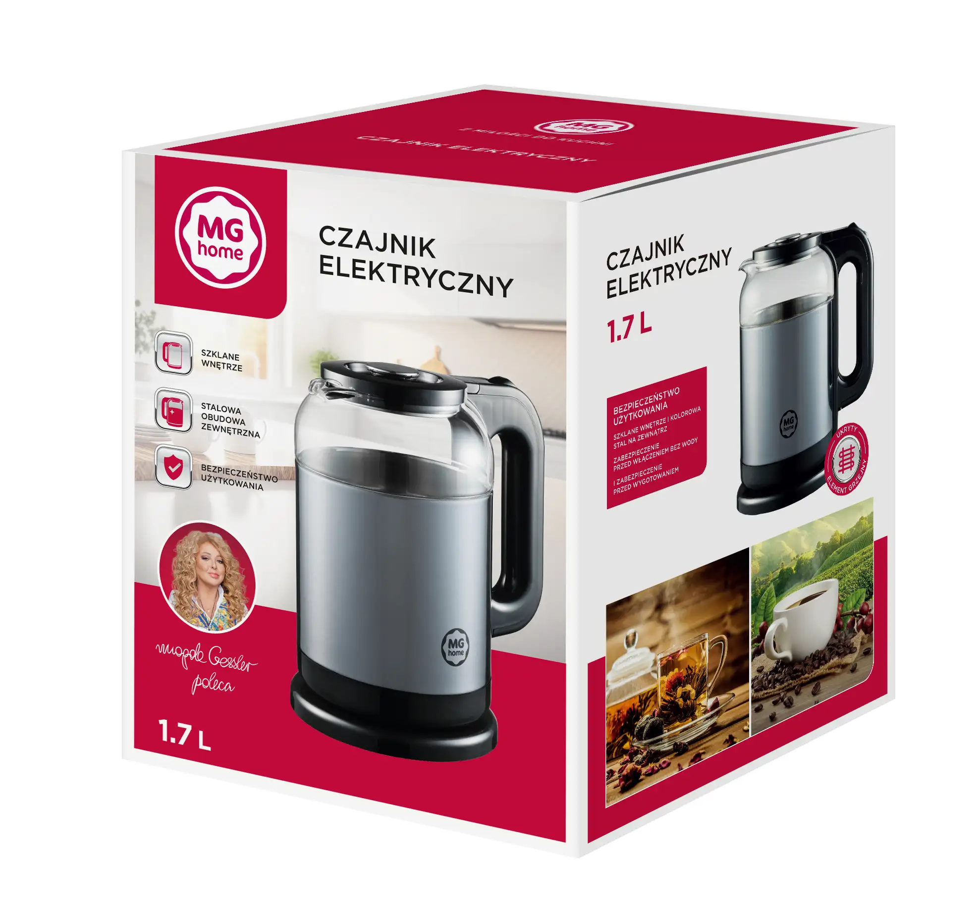 MG HOME | CZAJNIK ELEKTRYCZNY 1,7 L STALOWO-SZKLANY SZARY