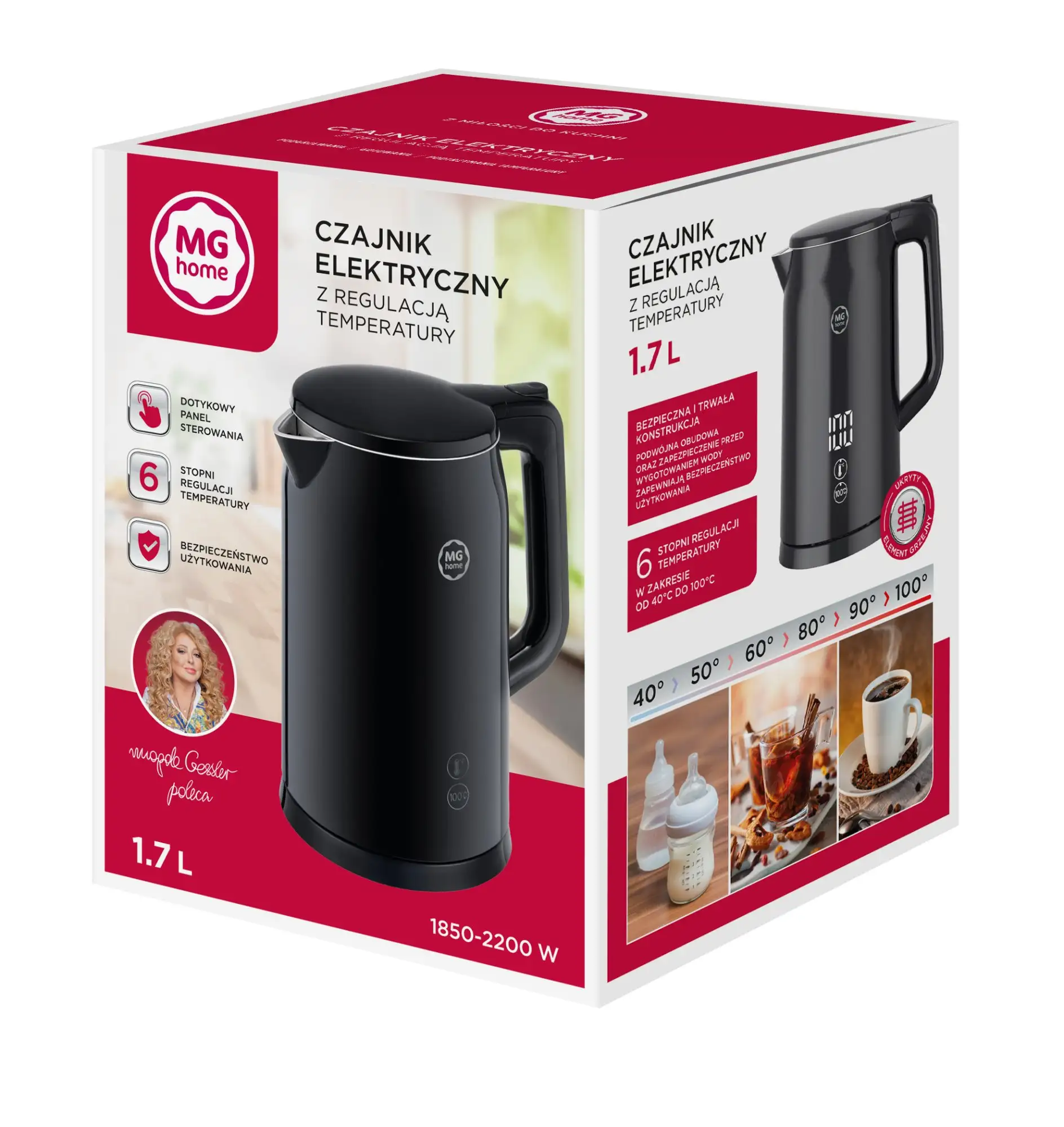 MG HOME Czajnik elektryczny 1,7 l z regulacją temperatury / stylowy / inteligentny / czarny