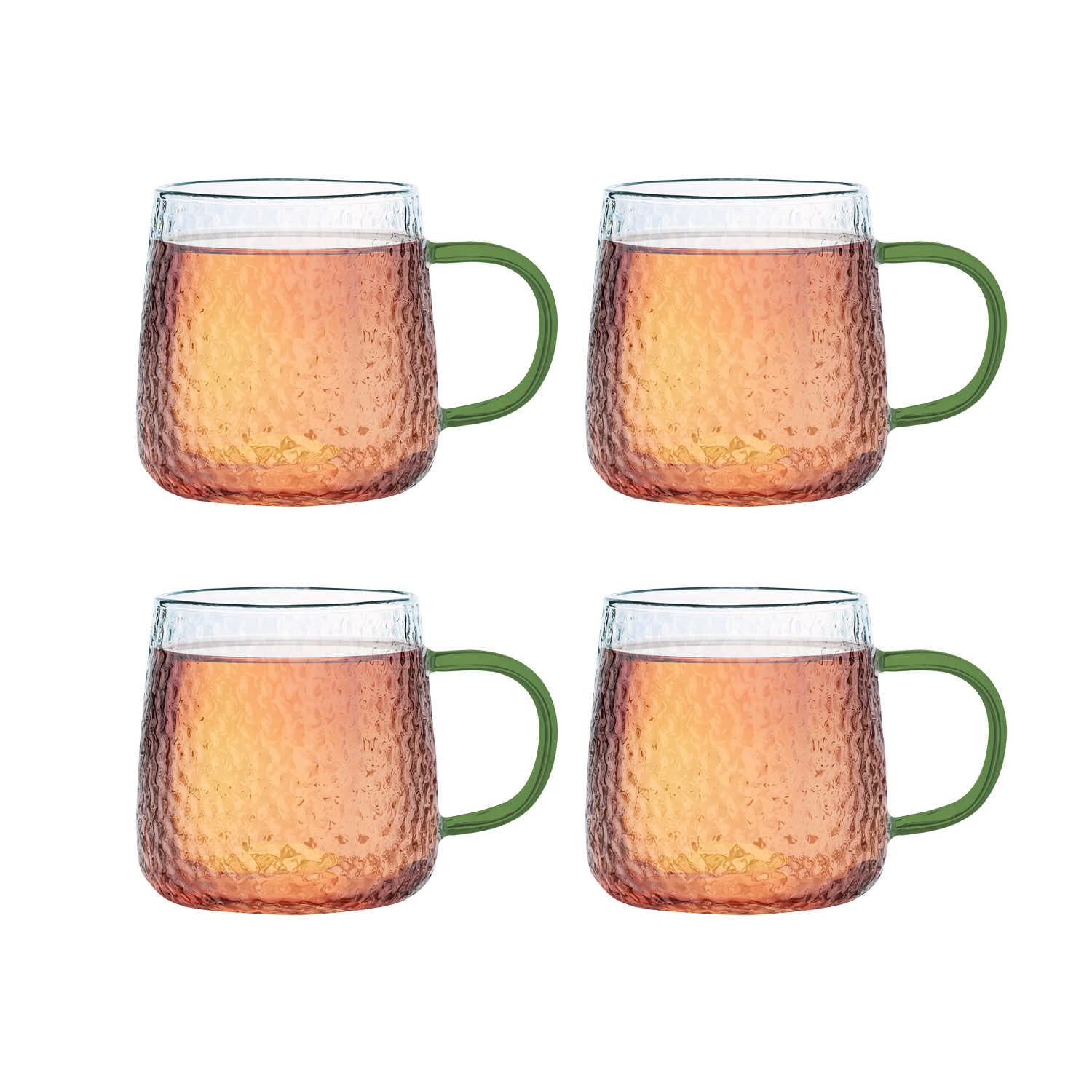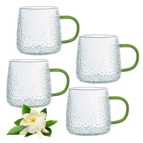 MG HOME | DECO Zestaw 4 szklanek żłobionych z uchem 350 ml / zielone