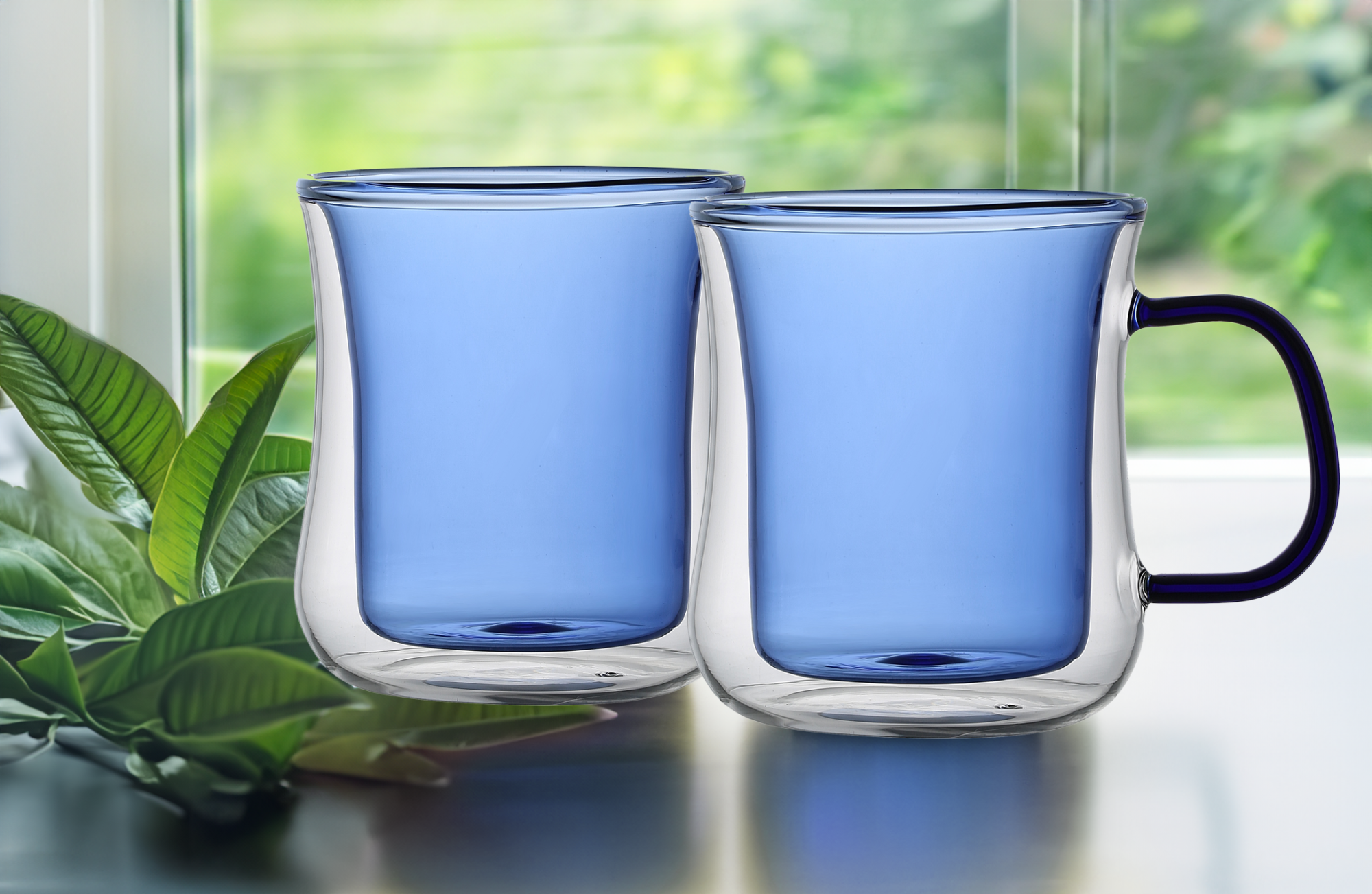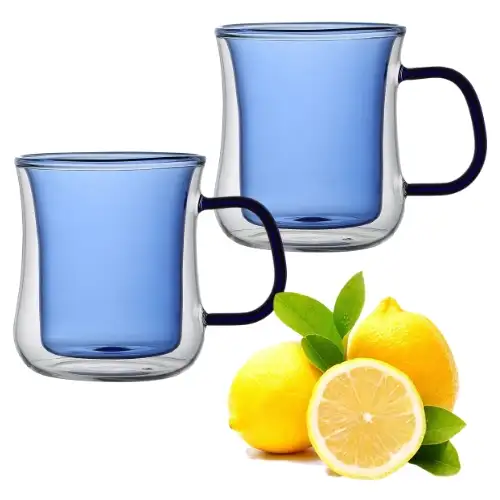 MG HOME Zestaw szklanek kolorowych Double Wall z kolorowym uchem 2x300 ml (niebieskie)