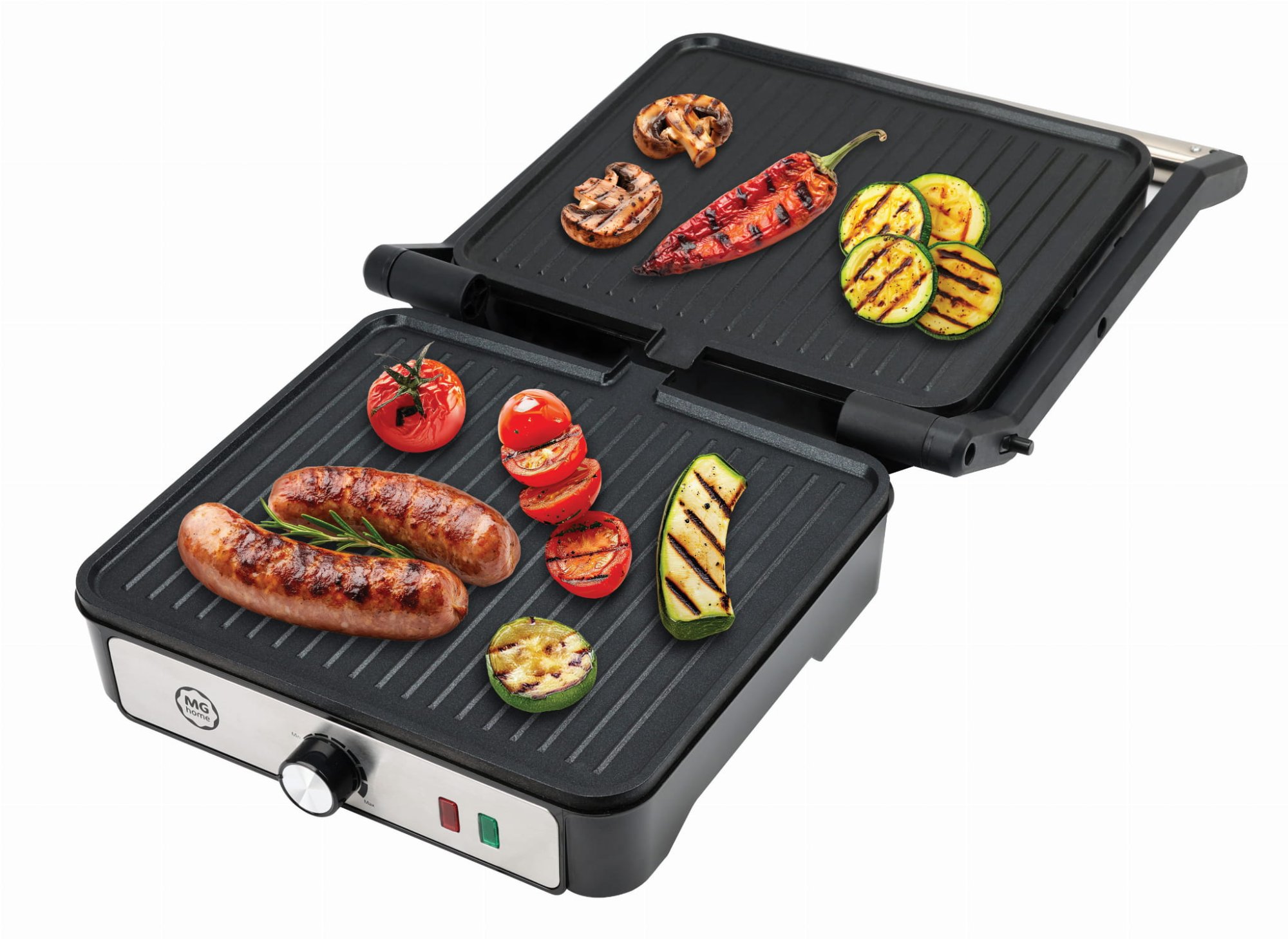 Dwustronne grillowanie – dzięki ruchomemu systemowi płytek możliwe jest jednoczesne pieczenie z góry i z dołu, co skraca czas przygotowywania potraw i zapewnia równomierne efekty