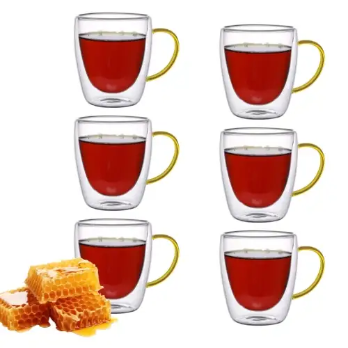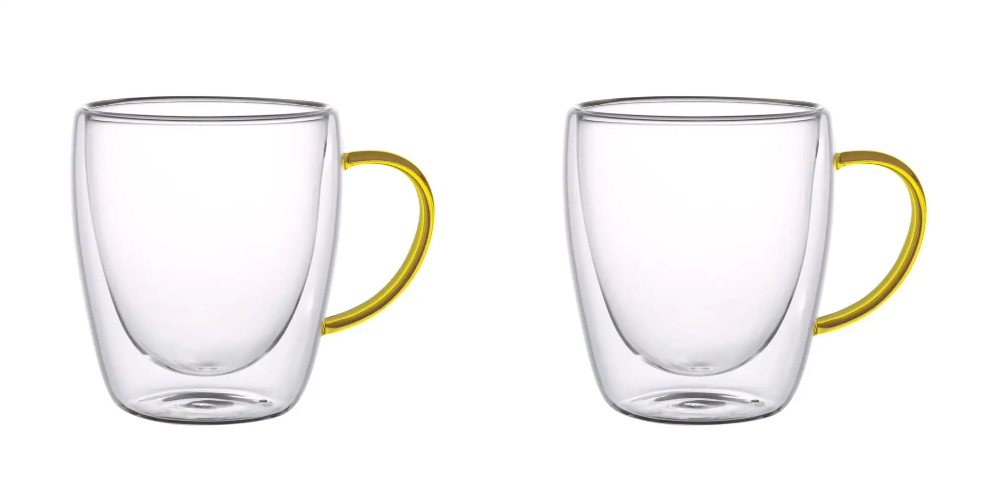 MG HOME | RENZA Zestaw 6 szklanek termicznych z uchem 300 ml / musztardowe