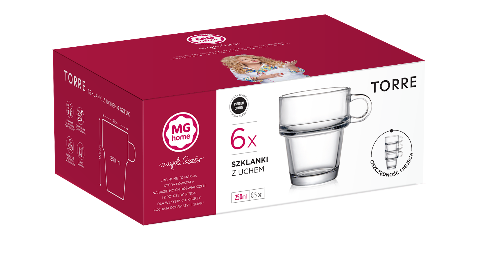 • Szklanki o pojemności 250 ml, doskonałe do serwowania napojów zimnych i gorących