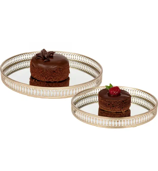 EXCELLENT HOUSEWAEW Zestaw 2 tac do serwowania z lustrem / metal
