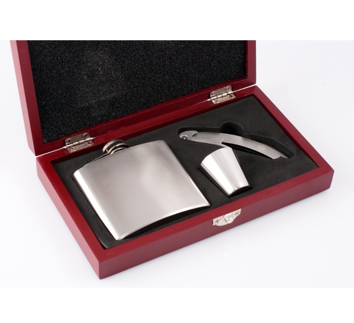 Efektowna piersiówka wykonana ze stali nierdzewnej to wyjątkowa propozycja prezentowa. Lekka i wygodna, zapakowana w stylową, drewnianą skrzyneczkę. Zobaczcie sami:
