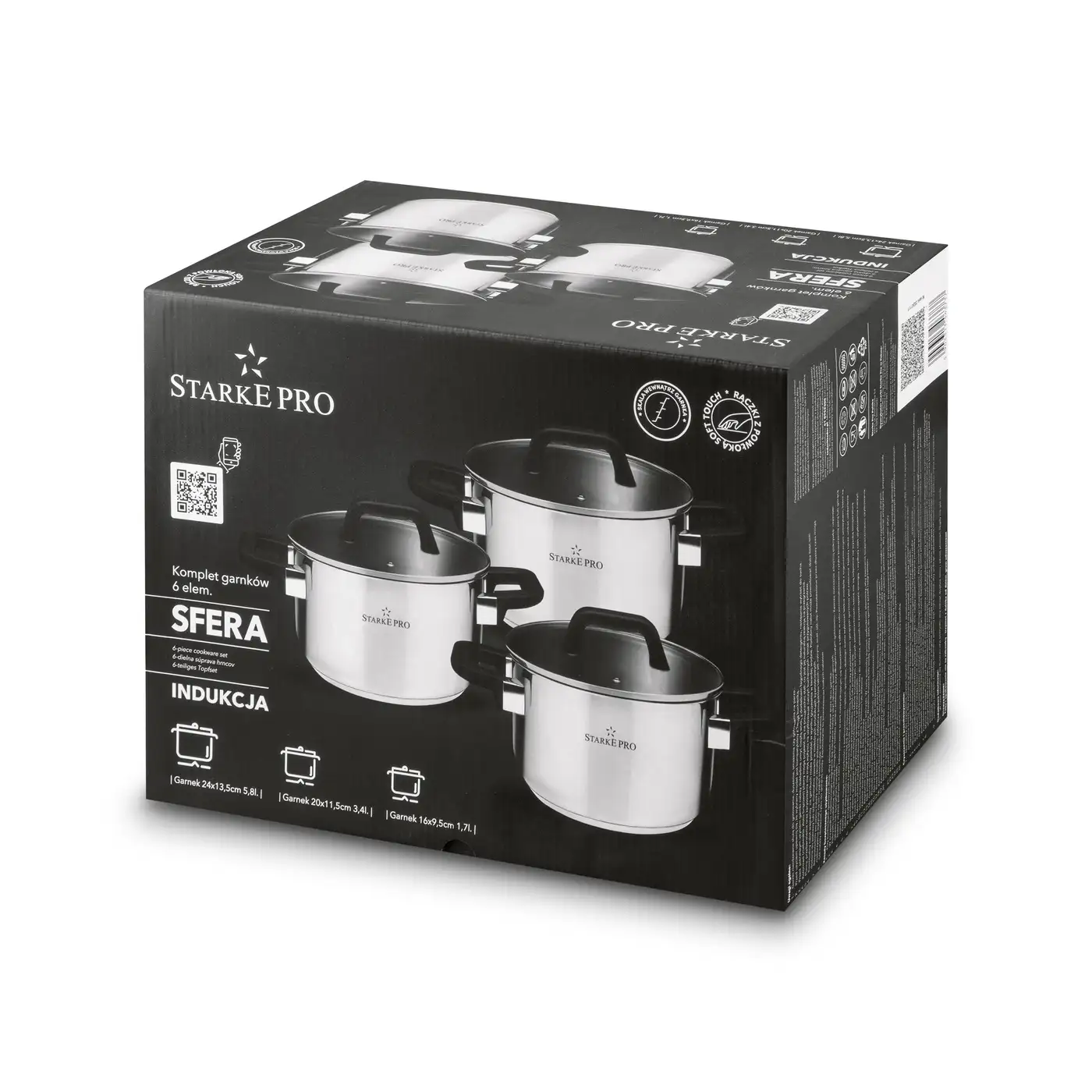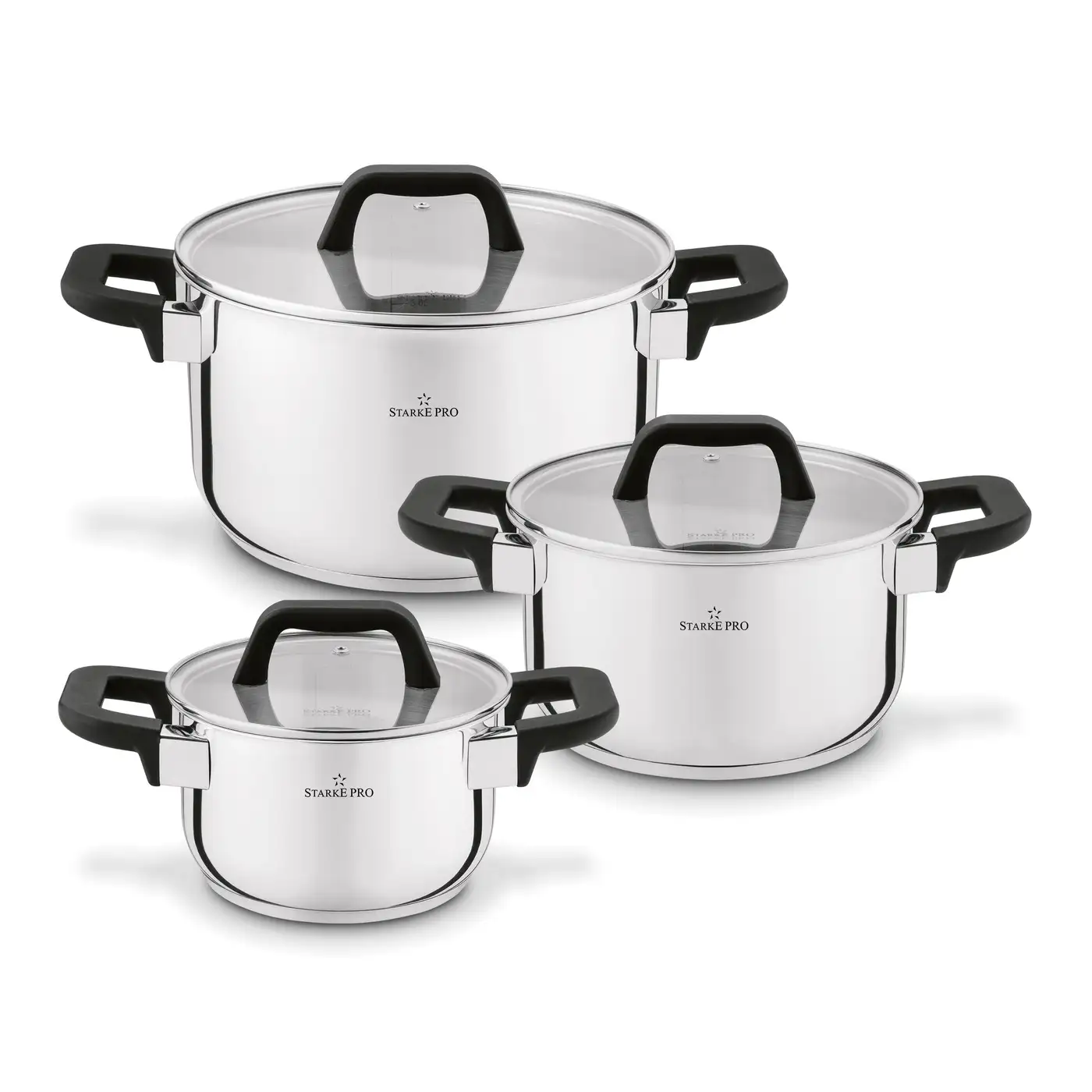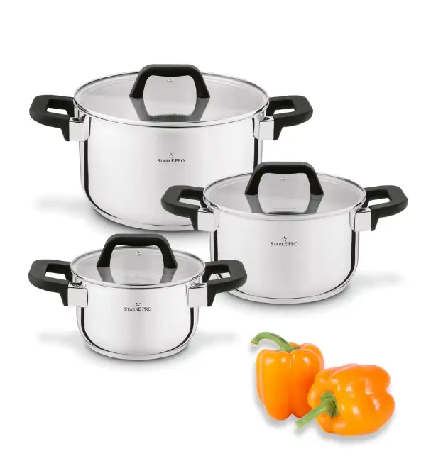 STARKE PRO SFERA Komplet 3 garnków z pokrywkami / stal nierdzewna