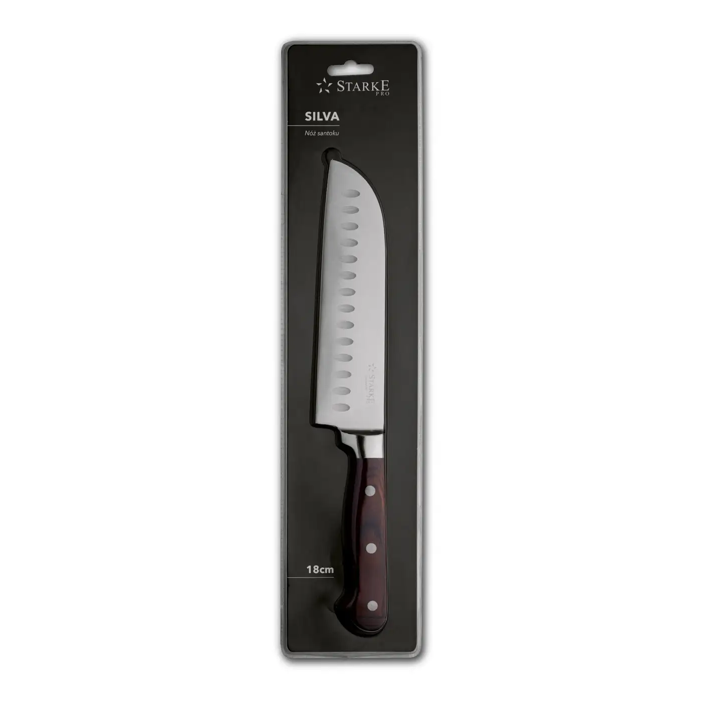 STARKE PRO SILVA Stalowy nóż japoński santoku / szefa kuchni 18 cm