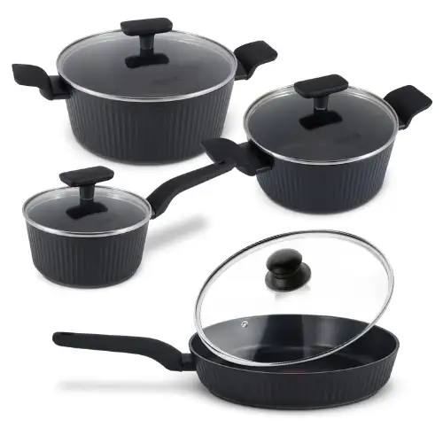 • Aluminium tłoczone na gorąco - zapewnia szybkie i równomierne rozprowadzanie ciepła, zmniejszając ryzyko przypalenia potraw