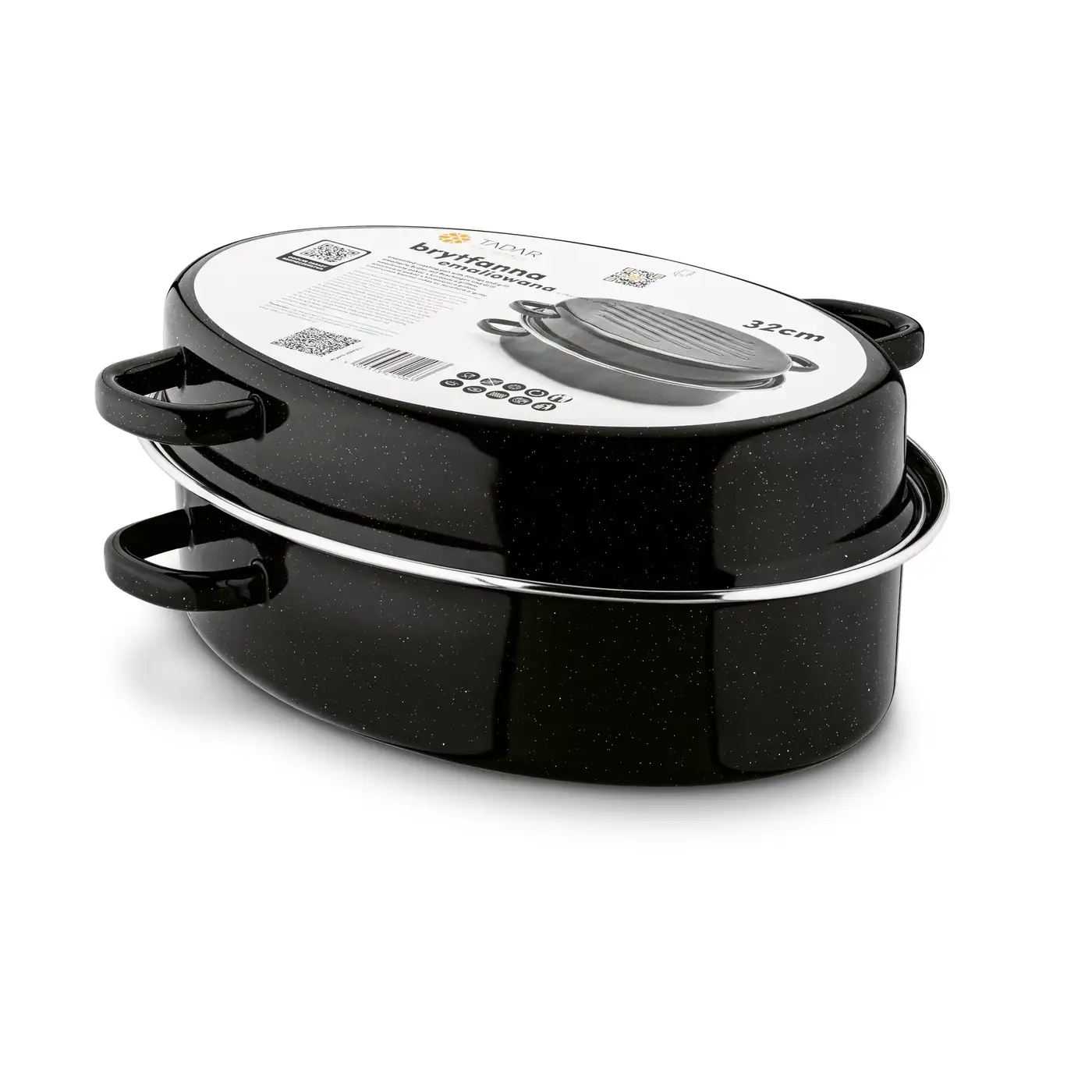 TADAR Brytfanna owalna z okuciem i grillem 3,5 L / czarna / stal węglowa / indukcja