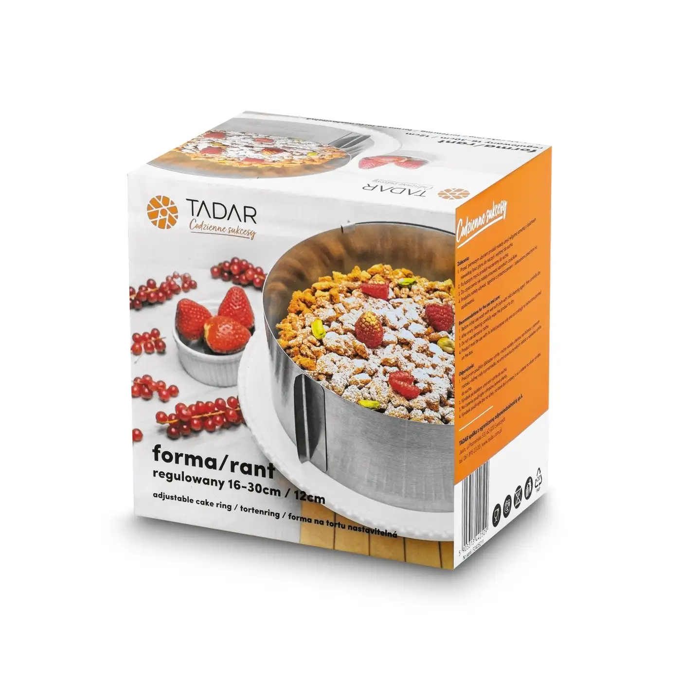 • Regulowana średnica formy od 16 do 30 cm, co pozwala na przygotowanie ciast o różnych rozmiarach