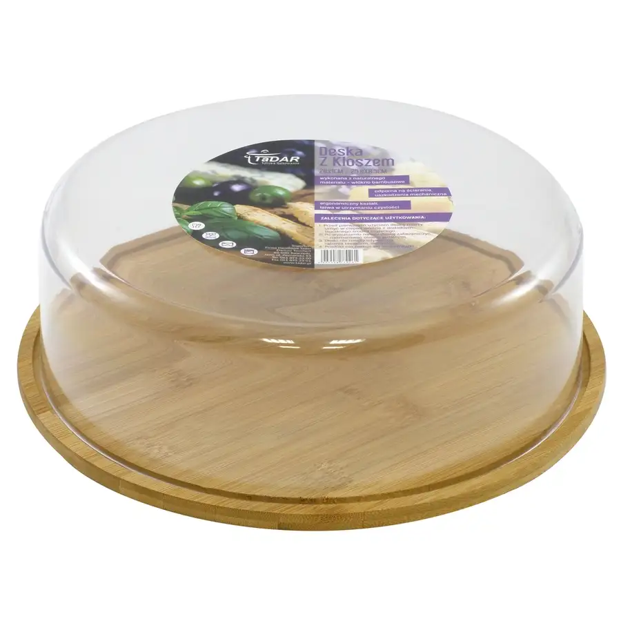 TADAR Deska bambusowa okrągła z kloszem ⌀ 28 cm / drewno bambusowe