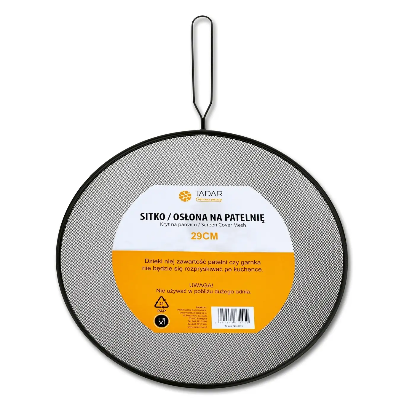 TADAR Sitko ochronne z rączką na patelnię / 29 cm / ochrona przed pryskającym tłuszczem
