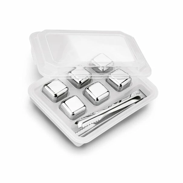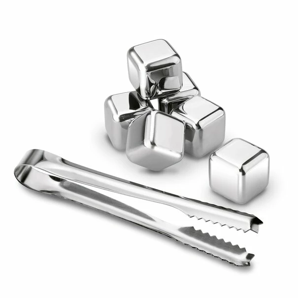 TADAR | STALOWE KOSTKI DO DRINKÓW 6SZT. + SZCZYPCE