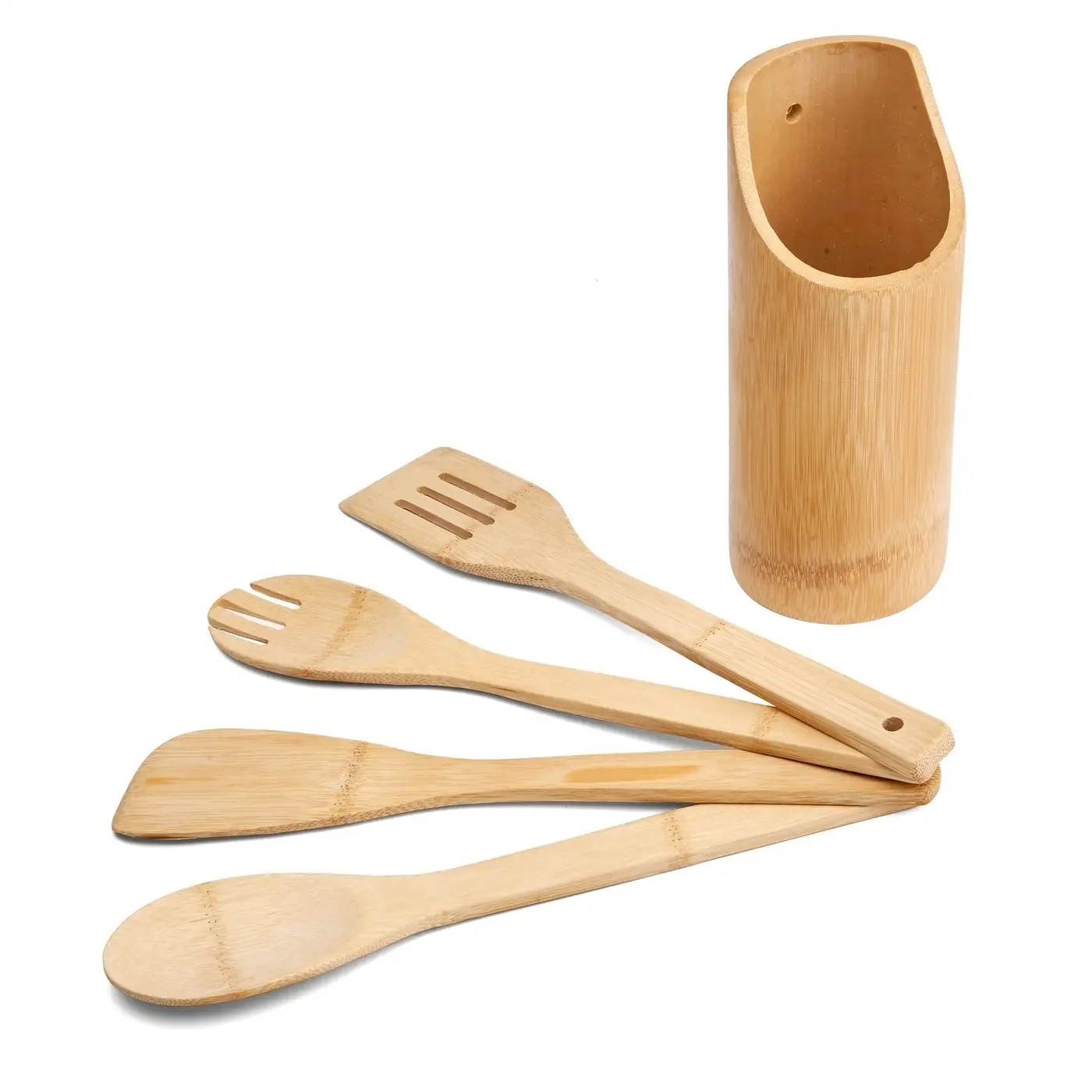 TADAR Zestaw 4 przyborów kuchennych z bambusowym pojemnikiem