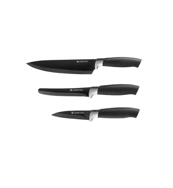 AMBITION JASPER BLACK Komplet 3 noży / stal nierdzewna - uszkodzone opakowanie -