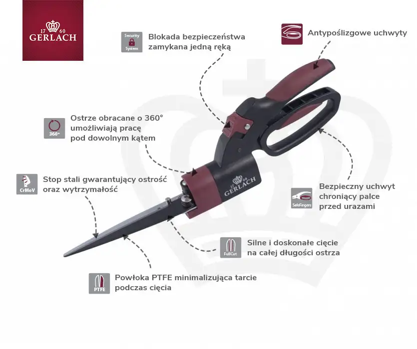 GERLACH Nożyce do trawy / stal nierdzewna