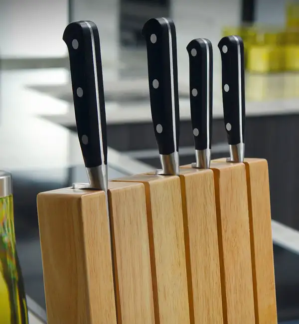 • Noże wykonane z wysokiej jakości stali nierdzewnej chromowo - molibdenowo - wanadowej
