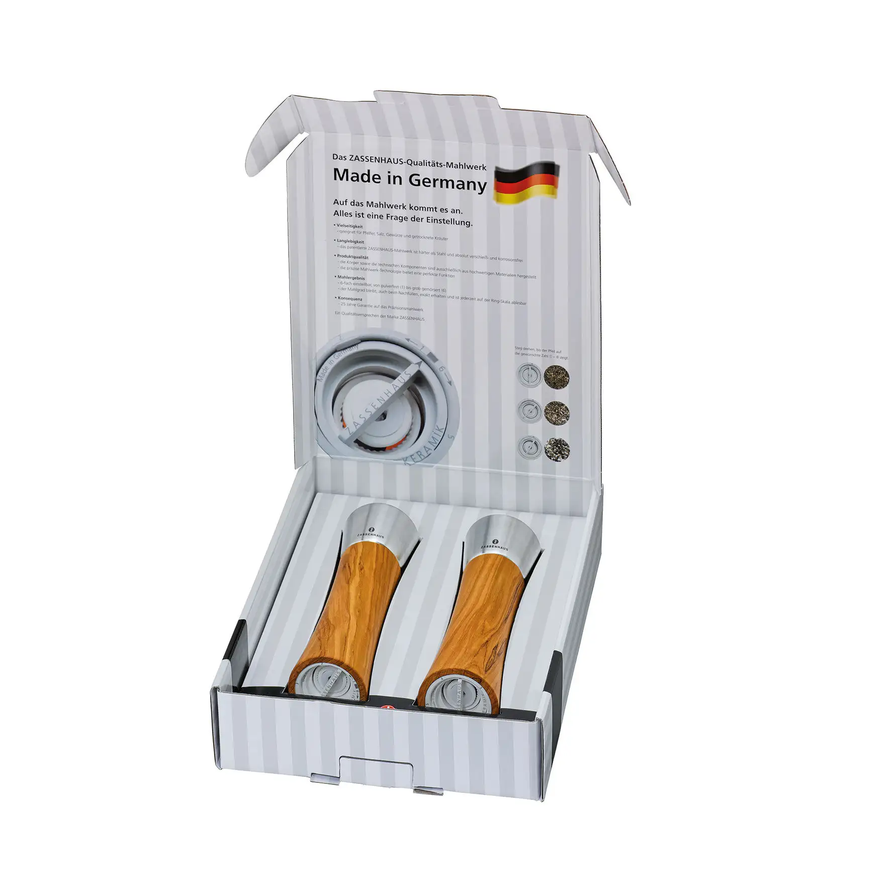 ZASSENHAUS | Augsburg | zestaw 2 młynków do soli i pieprzu z drewna oliwnego