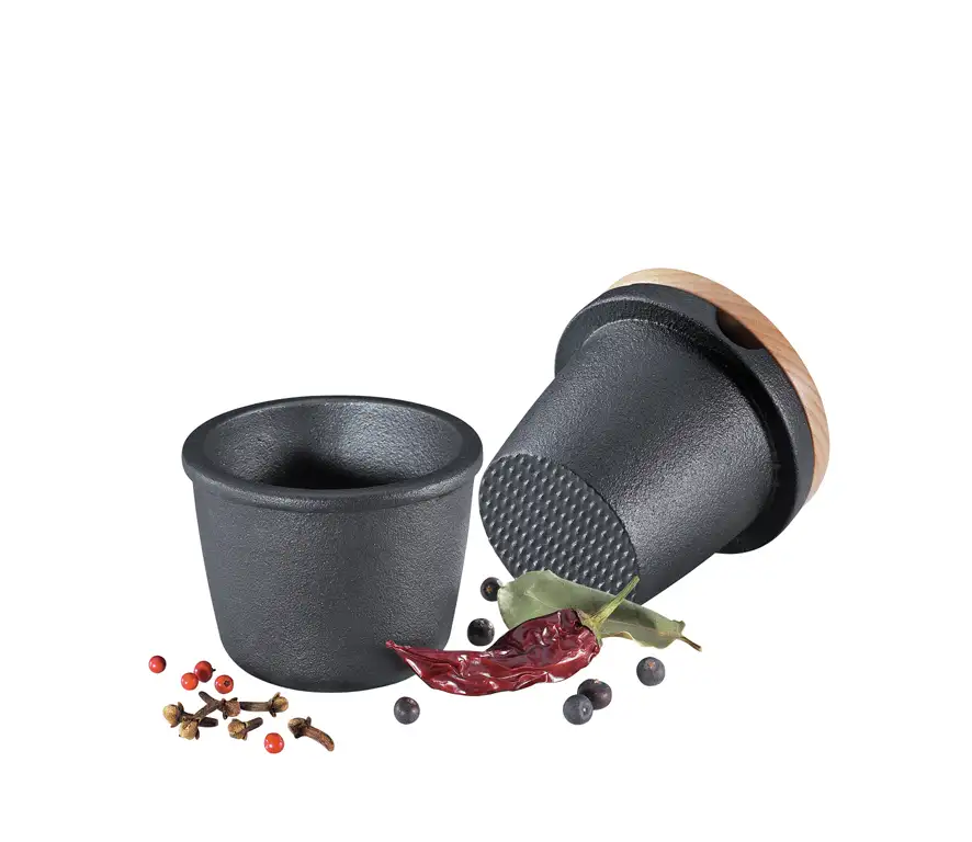 ZASSENHAUS Moździerz żeliwny do przypraw z bukową pokrywką / 8 cm