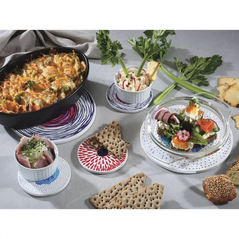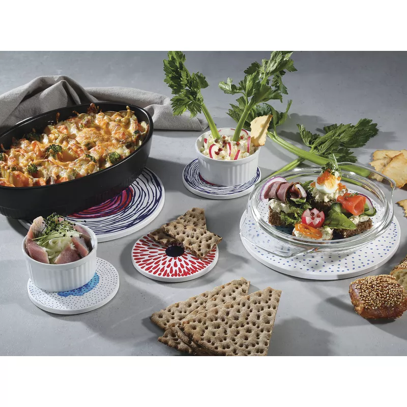 ZASSENHAUS | Scandic | podkładka pod szklankę, ceramika/korek, śred. 11 cm, czerwone krople