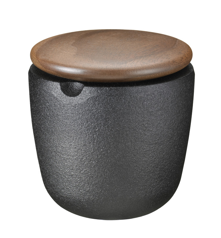 Nie jest nowością, że w kuchni powinny królować różnorodne zioła. Najlepiej świeże. Jednak najczęściej używamy suszonych, które przy odpowiednim przechowywaniu nie stracą zbyt wiele na swojej wartości. Nie powinno się przechowywać ziół w przypadkowych „pirackich” pojemnikach. Niech będą to naczynia do tego przeznaczone. Jednym z nich jest wspaniały żeliwny pojemnik z drewnianą pokrywą. Można w nim przechowywać różne przyprawy, nie wyłączając soli i pieprzu. Postawmy jednak na zioła i właśnie na nie go przeznaczmy. Pojemnik składa się z dwóch części: żeliwnej podstawy (25 lat gwarancji) i pokrywy z drzewa z orzecha włoskiego (2 lata gwarancji). Całość prezentuje się bardzo dostojnie i na pewno będzie nietuzinkowym dodatkiem do każdej kuchni.