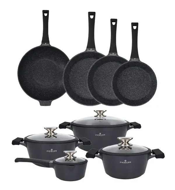 ZWIEGER BLACK STONE Zestaw garnków z pokrywkami 20, 24, 28 cm + Rondel 16 cm + Patelnie 20, 24, 28 cm + Wok 32 cm