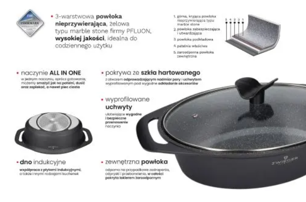 ZWIEGER FORTE Brytfanna 4,4 L z pokrywką 40 x 10 cm / czarna / aluminium