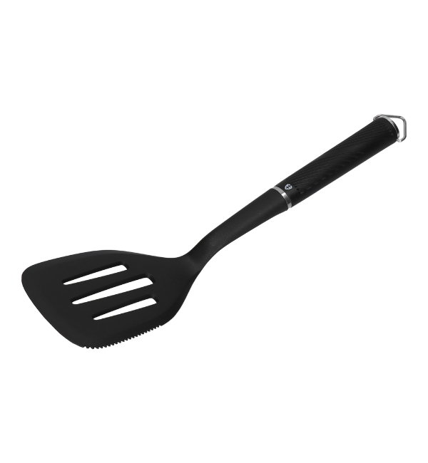 • Ząbki na brzegu pozwalają na patelni z łatwością dzielić potrawę na mniejsze kawałki