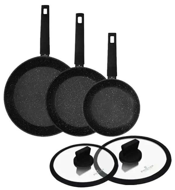 ZWIEGER FORTE Komplet Patelnia aluminiowa 20, 24, 28 cm / powłoka granitowa PFLUON / indukcja + pokrywki silikonowe Zwieger 24, 28 cm