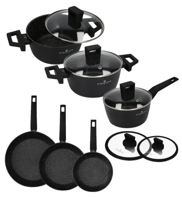 ZWIEGER FORTE Komplet garnków z pokrywkami 6 el /16, 18, 20 cm + Patelnia 20, 24, 28 cm + pokrywki Zwieger / aluminium