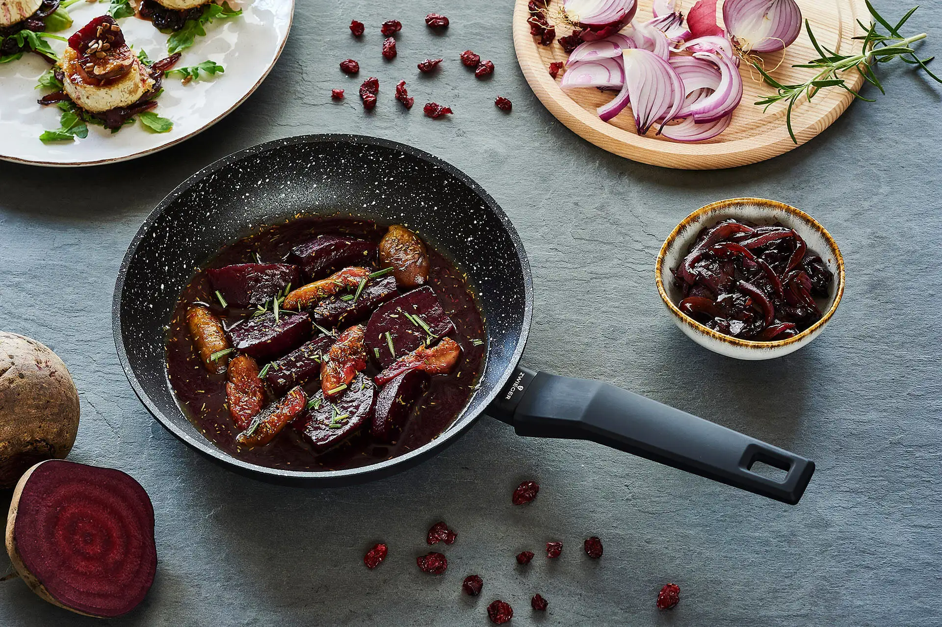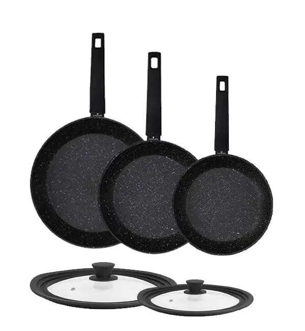 ZWIEGER FORTE Komplet Patelnia aluminiowa 20, 24, 28 cm / powłoka granitowa PFLUON / indukcja + pokrywki silikonowe Tadar