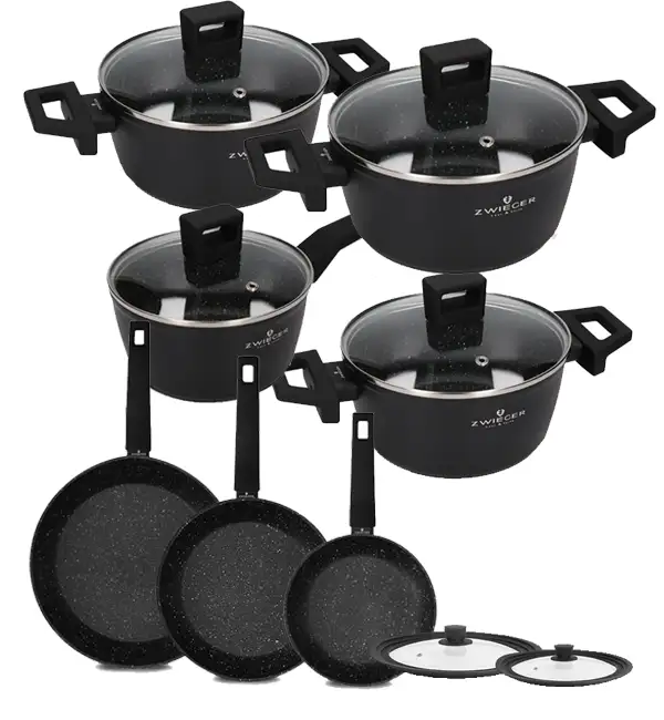 ZWIEGER FORTE Komplet garnków z pokrywkami 8 el /16, 18, 20, 24 cm + Patelnia 20, 24, 28 cm+ pokrywki silikonowe / aluminium