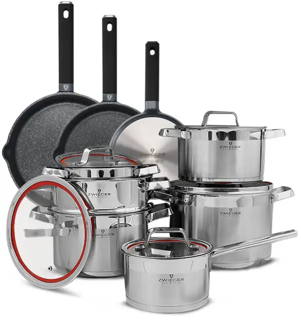 ZWIEGER KLASSIKER Komplet garnków z pokrywkami 11 el + Patelnie VESNA 20, 24, 28 cm