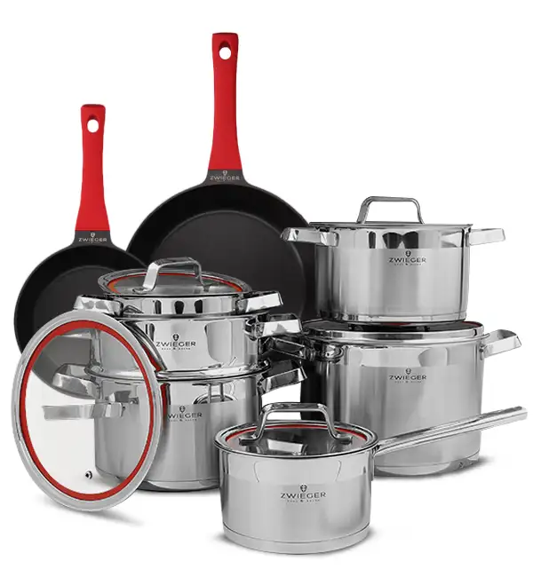 ZWIEGER KLASSIKER Komplet garnków z pokrywkami 11 el / stal nierdzewna SS 304 + Patelnie Obsidian 20, 28 cm