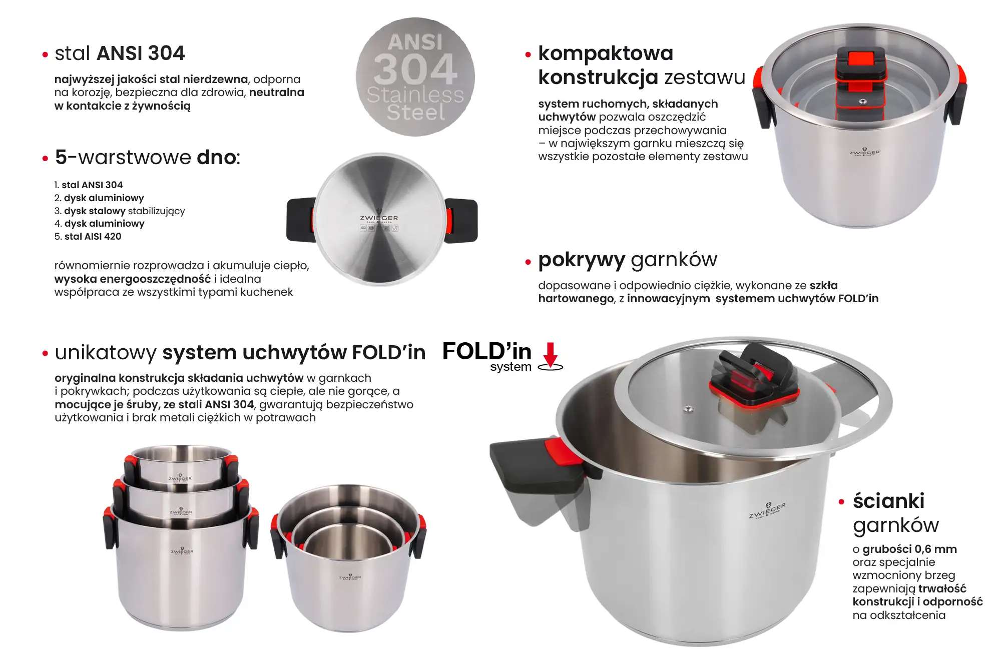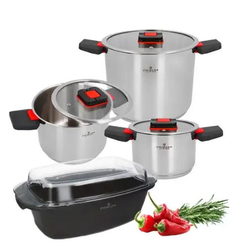 ZWIEGER KOMPACT Komplet 3 garnków z pokrywkami + Brytfanna Practi Plus