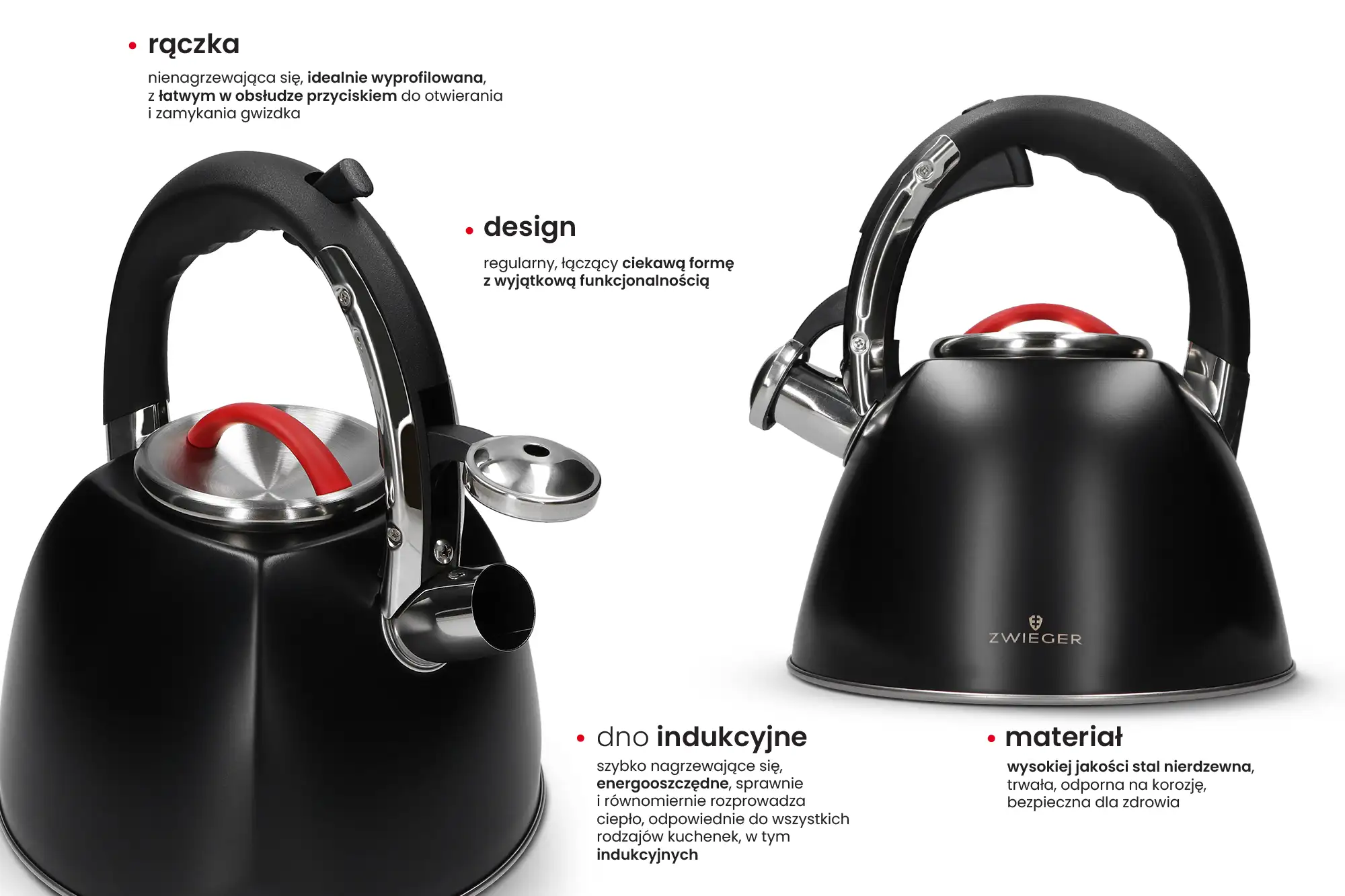 ZWIEGER RED LINE Czajnik z gwizdkiem 3 L / stal nierdzewna