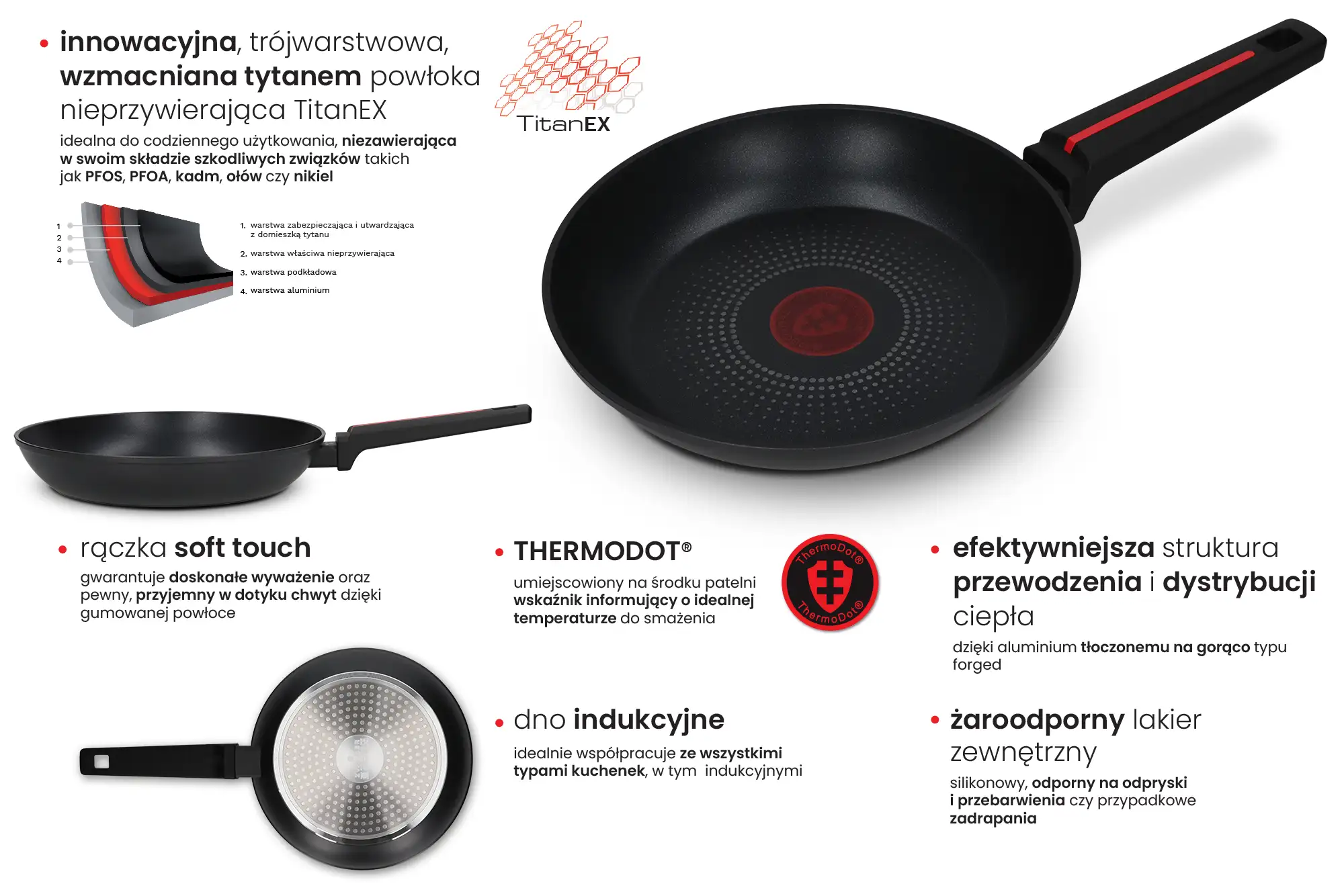 | Powłoka | Nieprzywierająca, Tytanowa |