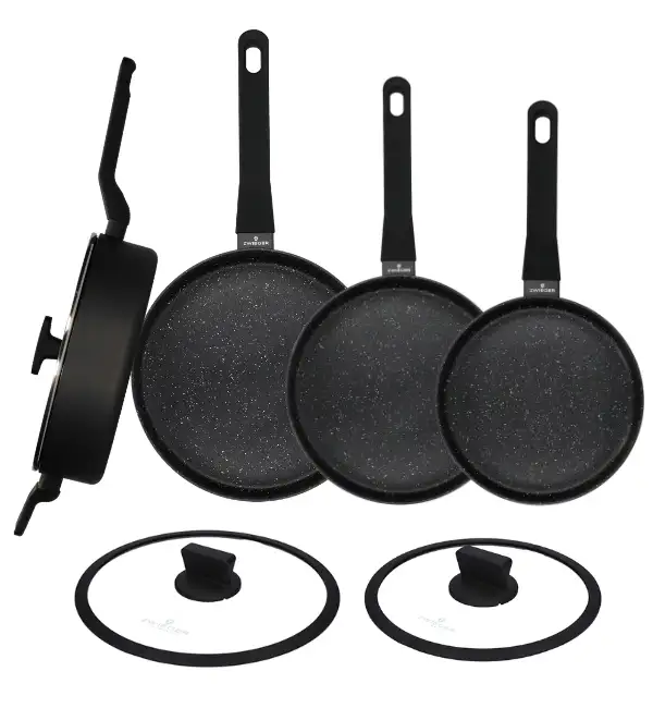 ZWIEGER VERON Komplet patelni 20, 24, 28 cm + Patelnia głęboka z pokrywką 28 cm + Pokrywki Zwieger 24, 28 cm