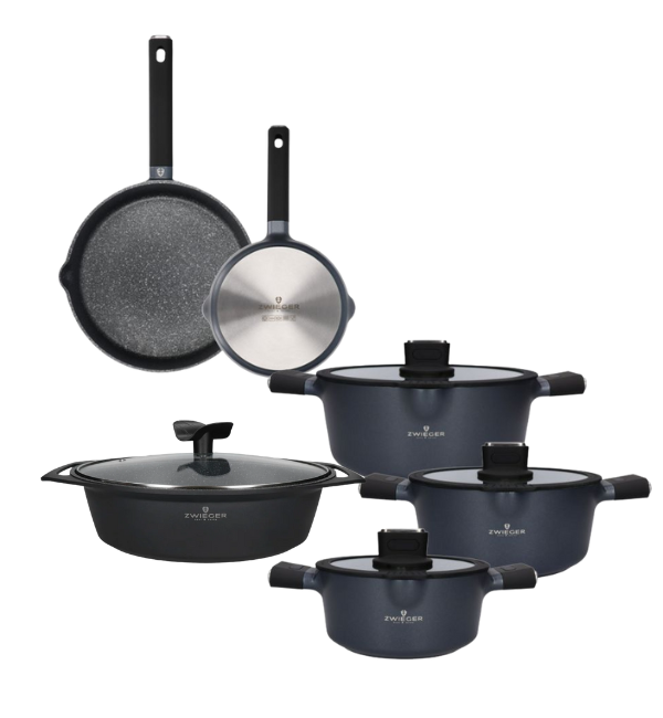 ZWIEGER VESNA Komplet garnków 6 el z pokrywkami 20, 24, 28 cm + Patelnie 20, 28 cm + Brytfanna 33 cm / indukcja